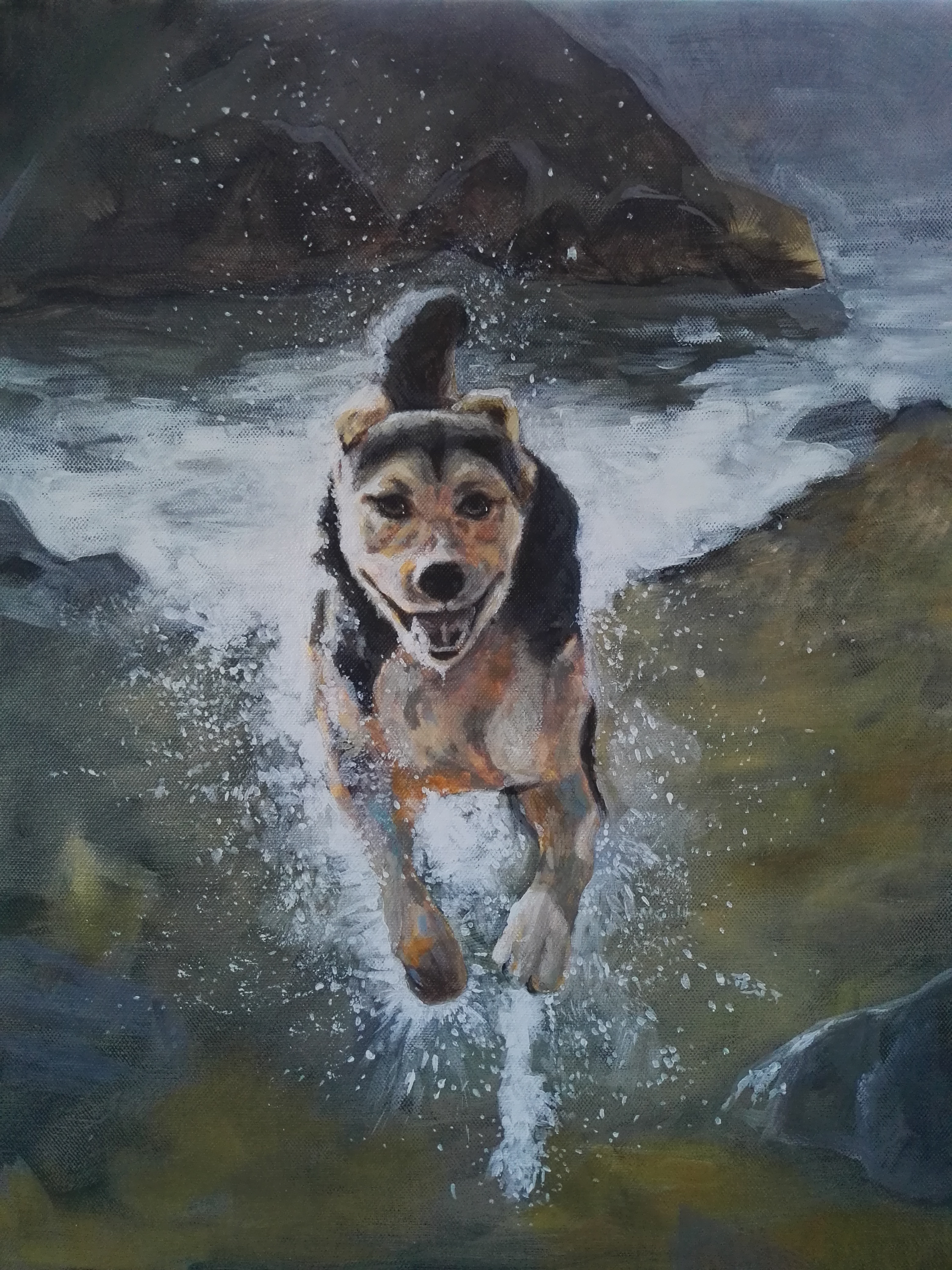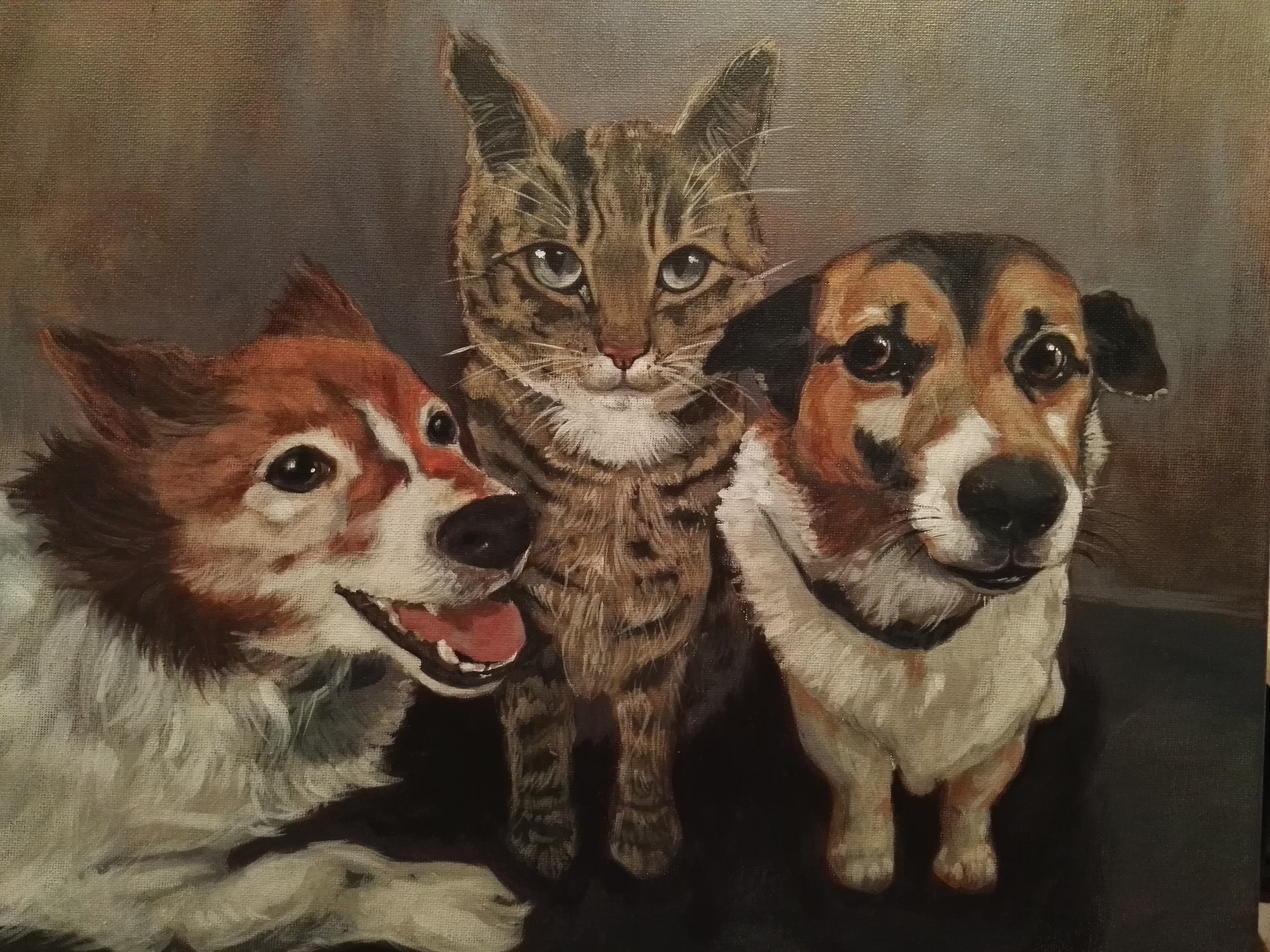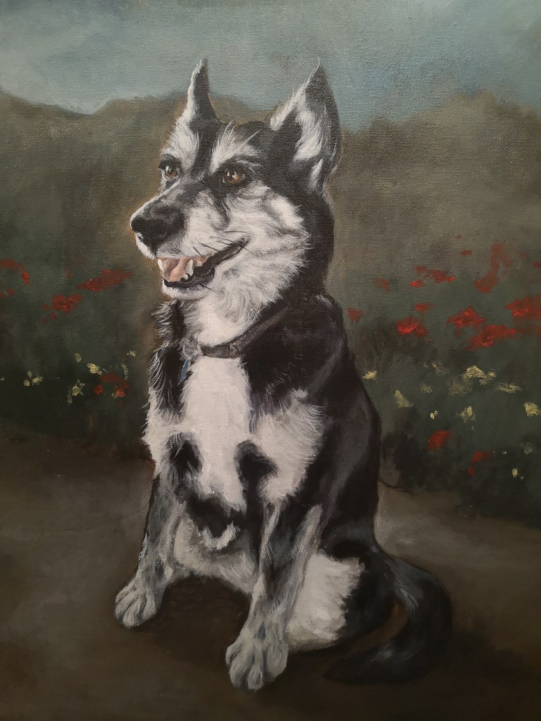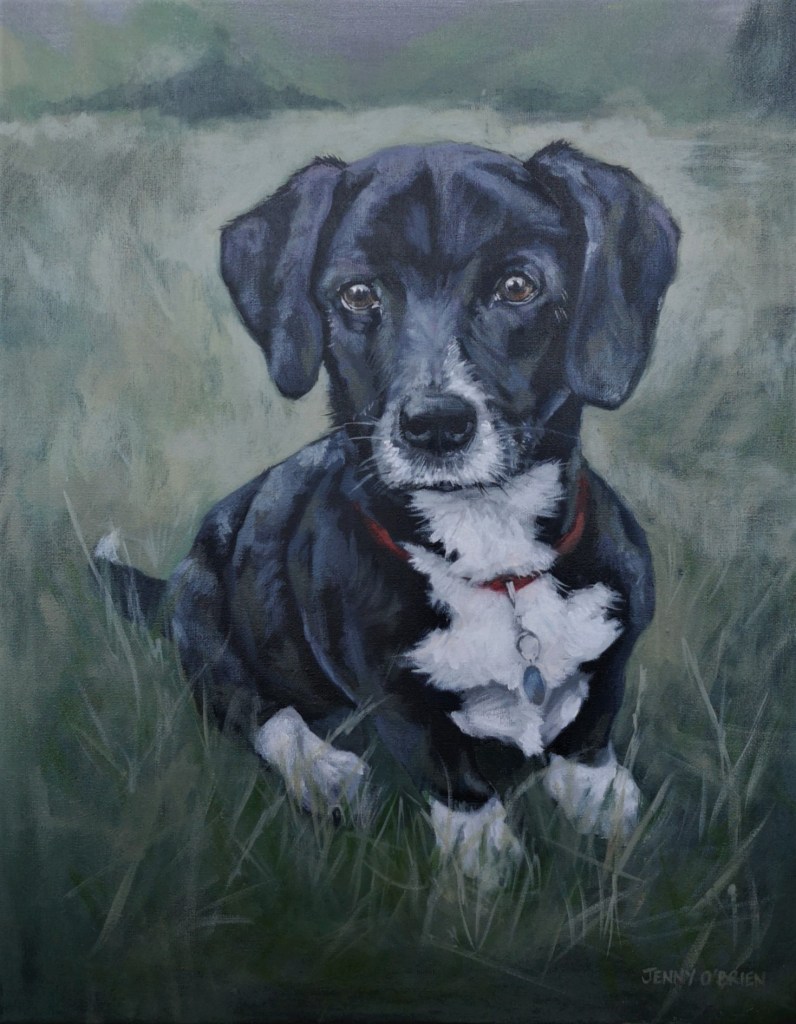 Tiny, Acrylic on canvas 20″ x 24″Mojo, Acrylic on Canvas 16″ x 20″Jezzie, Acrylic on Canvas 16″ x 20″Wolfie, Acrylic on canvas 16″ x 20″